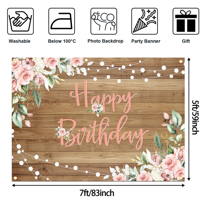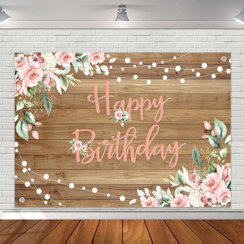 Avezano Rustic Wood Birthday Banner Happy Birthday Party Decorations Pink Floral Girls Women Bday Backdrop Photo Booth Studio Props