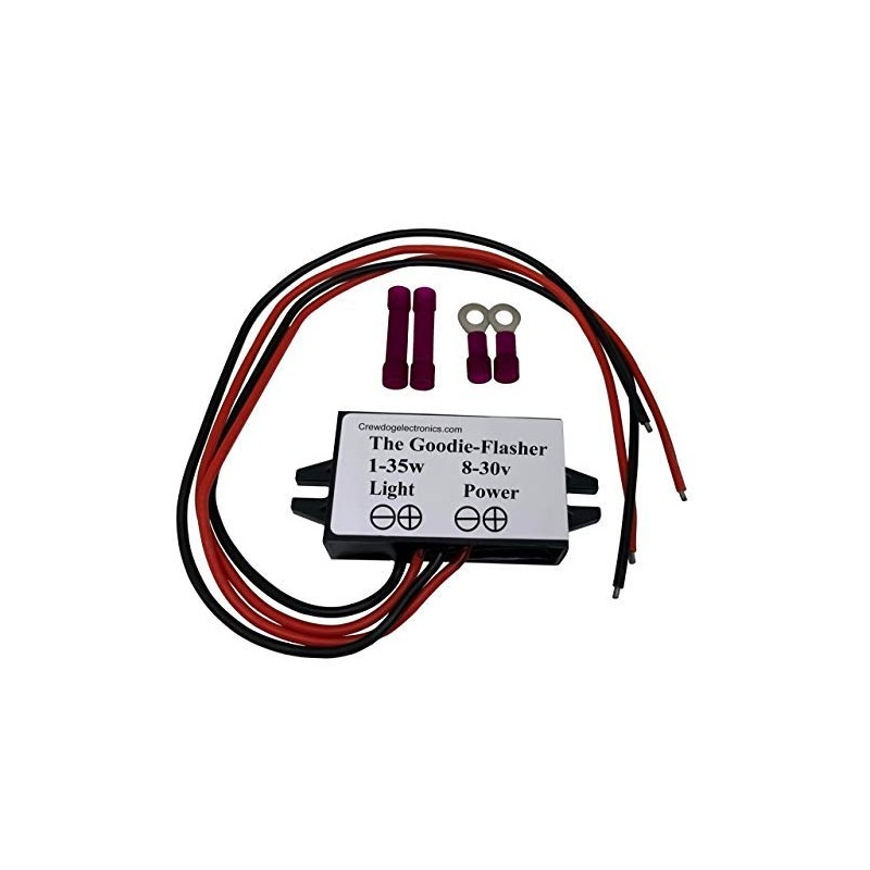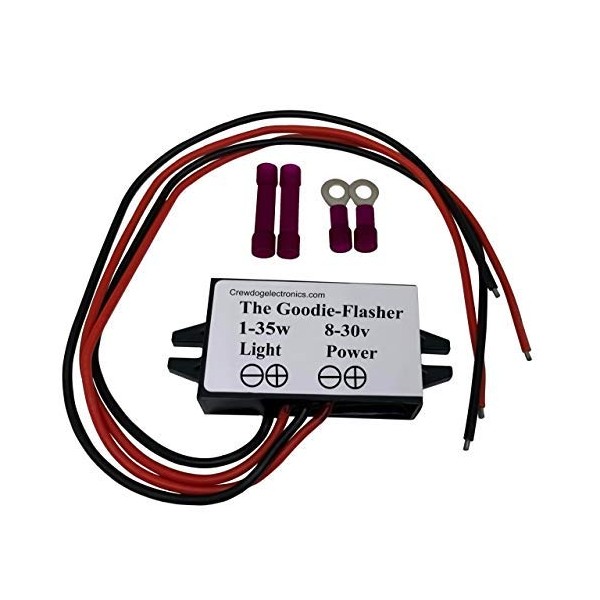 - SIMPLE OPERATION: power light on once for steady operation, off and on again for flashing, cycle just repeats. One flasher required per light. Flasher will not communicate between two lights for a wig wag effect.