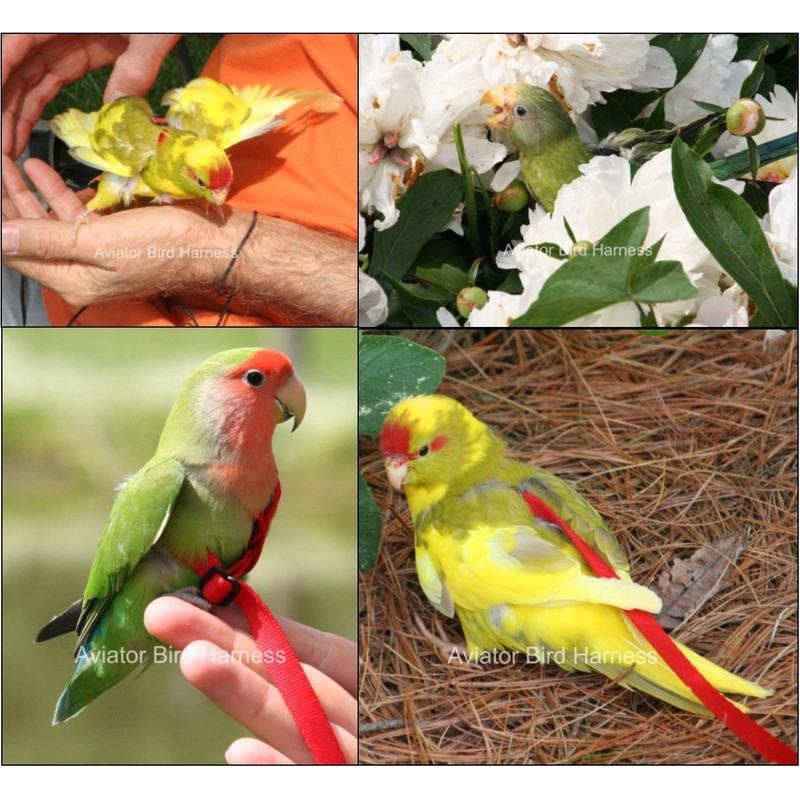 The Parrot University have been producing the Aviator harnesses since 2005. It comes with free Aviator training information, and thereâ€s seven different sizes and choice of up to six colours.