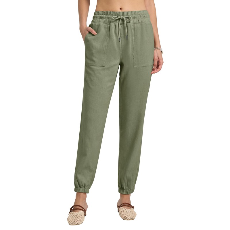 AVICHIC Women’s Linen Pants Joggers Lightweight Cotton Lounge Travel Beach Casual Linen Pants with Pockets 28" Sage Green L
