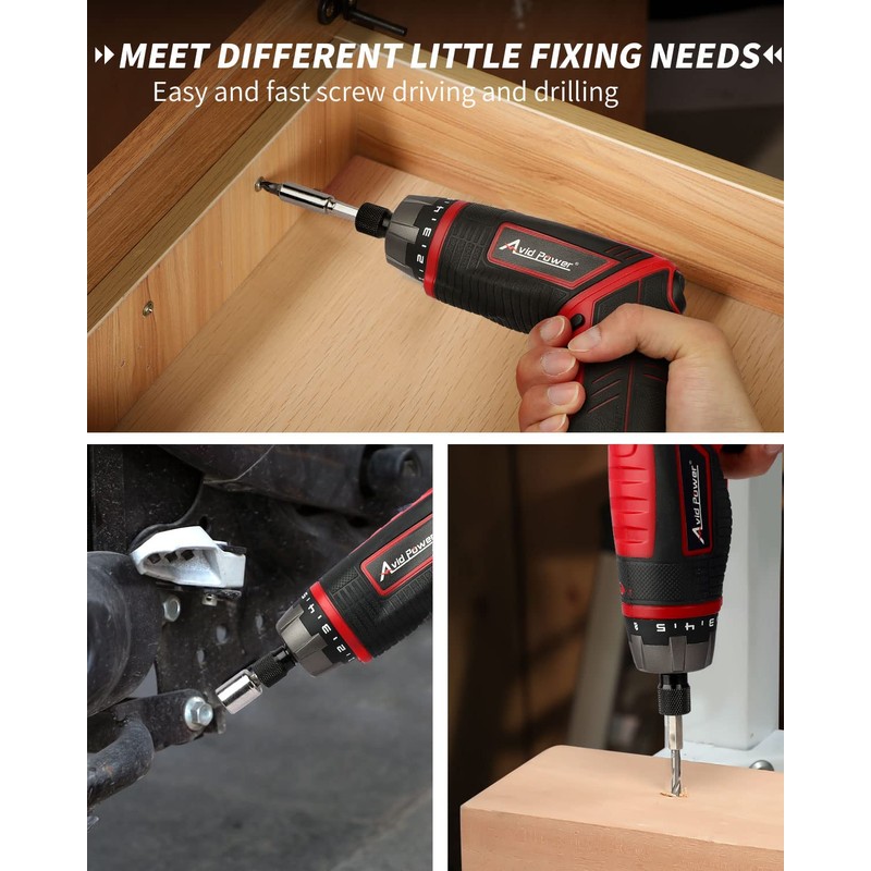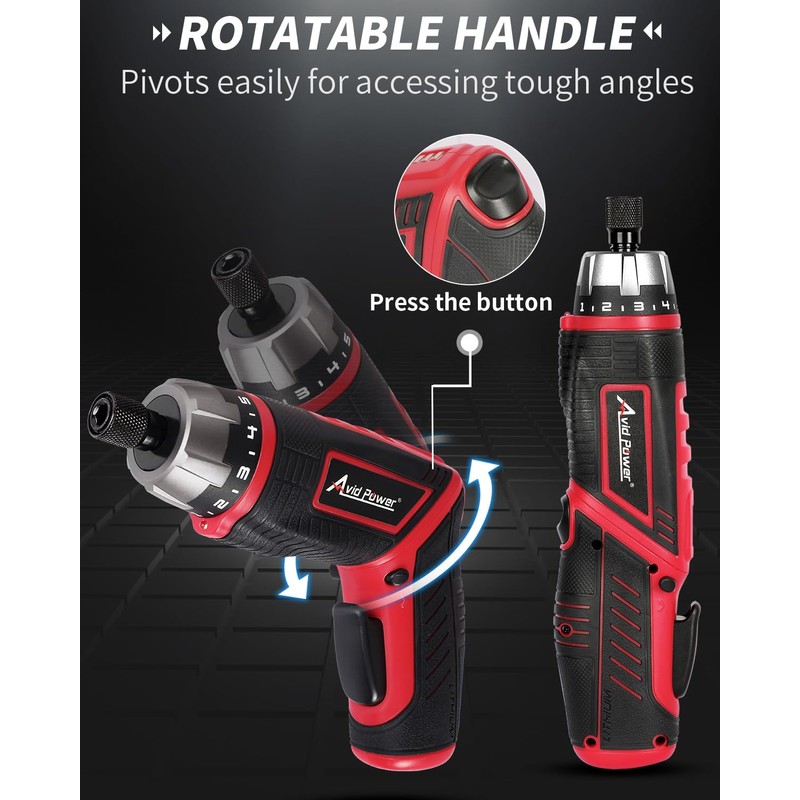 AVID POWER Electric Screwdriver Set Rechargeable 4V Cordless Screwdriver Kit with 44pcs Accessories, 5.65Nm Screw Gun, 5+1 Torque Setting, 2 Position Handle with LED Light