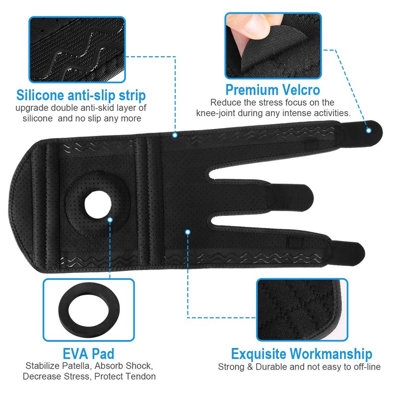 *** Open-Patella Design: The upgraded knee support brace with open-patella design relieves pressure and stress on the knee-joint during exercise.