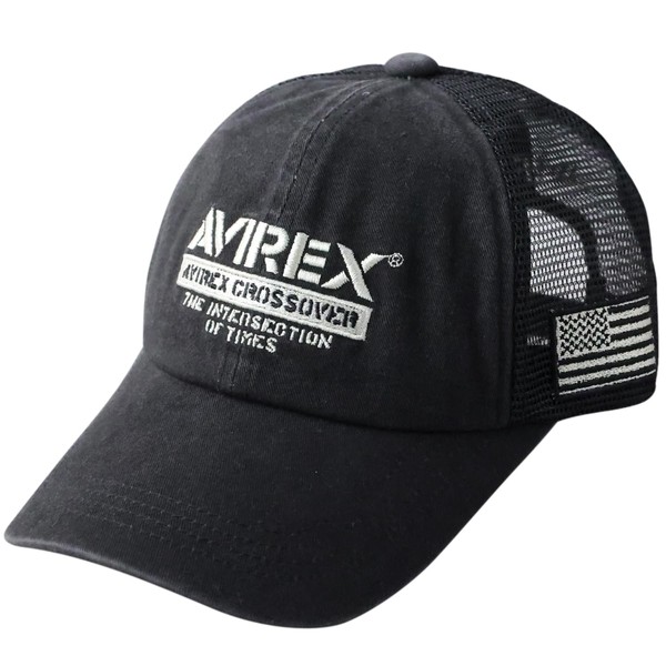 Avilex Pigment Mesh Low Cap, Mesh Cap, Baseball Cap, Hat, Men's, 6 Panel Cap, Cotton Cap, Polo Cap, Full Cap, CROSS Black