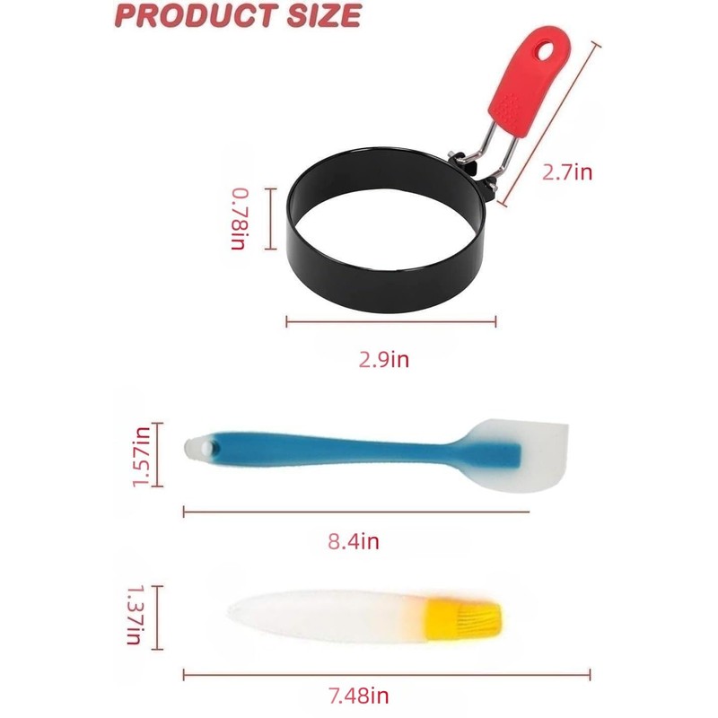 - Easy to use: lift the handle and brush the inside of the egg ring with a little oil. When the egg is fried, use a spatula along the edge to ensure it does not stick to the edge. The silicone handles to prevent scalding are easy to adjust and hold without burning your hands.