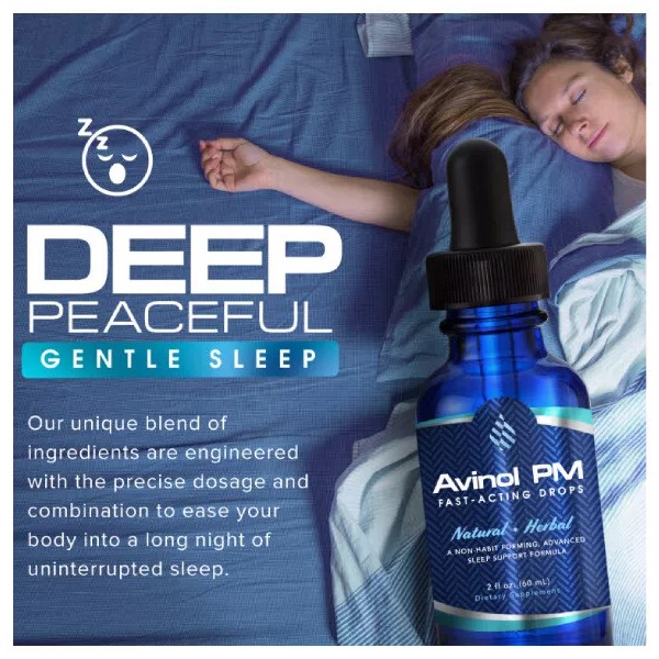 NATURAL SLEEP AID - Fall asleep fast, stay asleep throughout the night, and wake up refreshed and energized. Avinol PM Liquid Drops uses an all natural and proprietary blend that includes: Melatonin, Valerian, L-Theanine, Magnesium and a host of other herbal ingredients to calm your mind and your body.