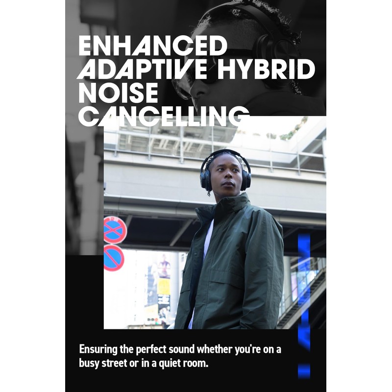 • Experience ultimate audio quality with our High-Resolution Wireless Headphones featuring Adaptive Hybrid Noise Cancelling. Equipped with four microphones for superior noise reduction, these headphones adapt to your environment, ensuring the perfect sound whether you're on a busy street or in a quiet room.