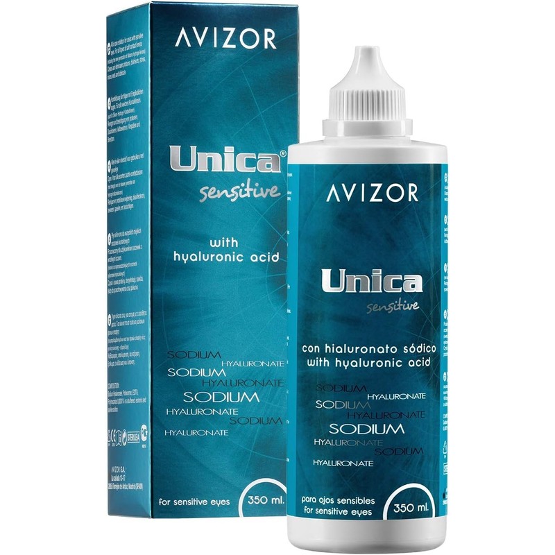 Avizor Unica sensitive is a multi-purpose contact lens solution for soft contact lenses including silicone hydrogel contact lenses. This solution has been specially developed for users which increased requirements of comfort or you have particularly Empfingliche eyes. The multi-purpose contact lens solution can be used for cleaning, disinfecting, storing, rinsing and suggested of contact lenses. Avizor Unica sensitive is also suitable for silicone hydrogel contact lenses.