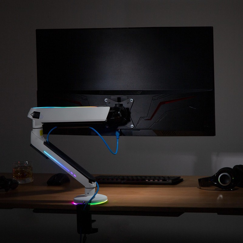 AVLT RGB Lights Single 13”-34” Monitor Arm Desk Mount Built-in 179 Modes & 17-Key Remote Controller Fits One Flat/Curved/Ultrawide Screen Height Swivel Tilt Adjustable Monitor Stand