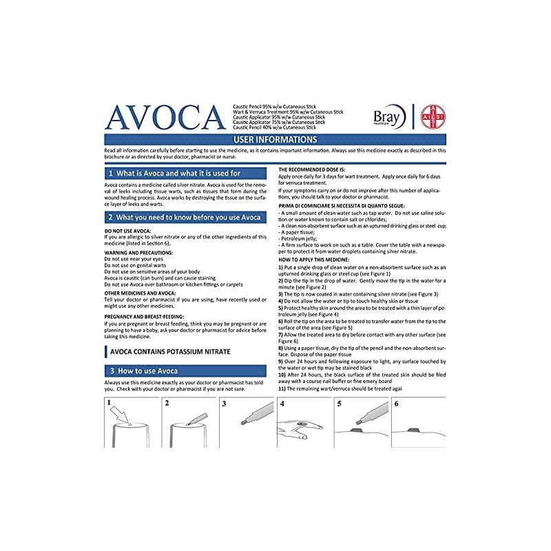 - Commonly used for the removal of leeks, warts, excess tissues that form during the wound healing process, granulation tissue, stomach maintenance, umbilical strains, cautery, anterior nosebleeds, vasomotor rhinitis, post-biotic cervical necrosis, pain relief for aphthous stomatitis, parenteral feeding sites. Avoca works by destroying tissue on the surface layer of leeks and warts