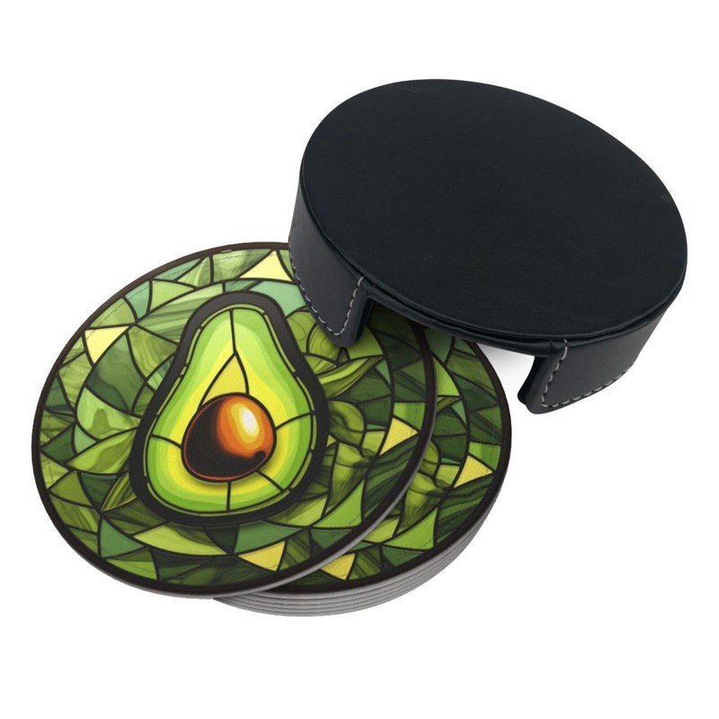 Avocado Coasters for Drinks,Avocado Decor Bar Drink Coasters for Coffee Table,Leather Cup Coasters Set of 6 with Holder for Wooden Table,Housewarming Bar Coasters Gifts (Avocado)