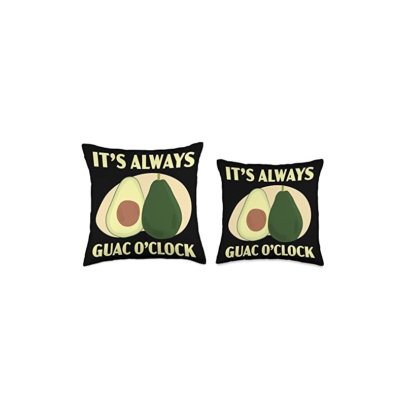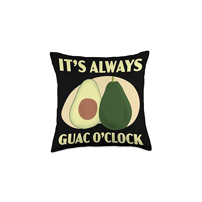 Avocado Lover Vegan Guac Guacamole SteMi Apparel It's Always O'clock Avocado Fruit Guac Guacamole Lover Throw Pillow, 18x18, Multicolor