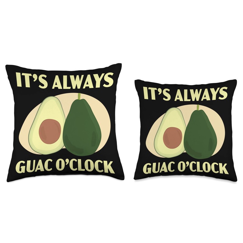 - It's Always Guac O'clock - This avocado design features a cute avocado fruit ideal for avocado eaters. Great for an avocado king or avocado queen who is a vegan and is on a green diet and only eats healthy and nutritious fruit like avocados.