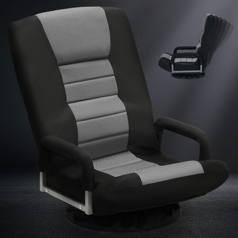 Avocahom 360° Swivel Chair 6 Adjustable Positions Backrest with Armrest Foldable Floor Chairs Suitable for Reading, Relaxing, Mediation,Grey