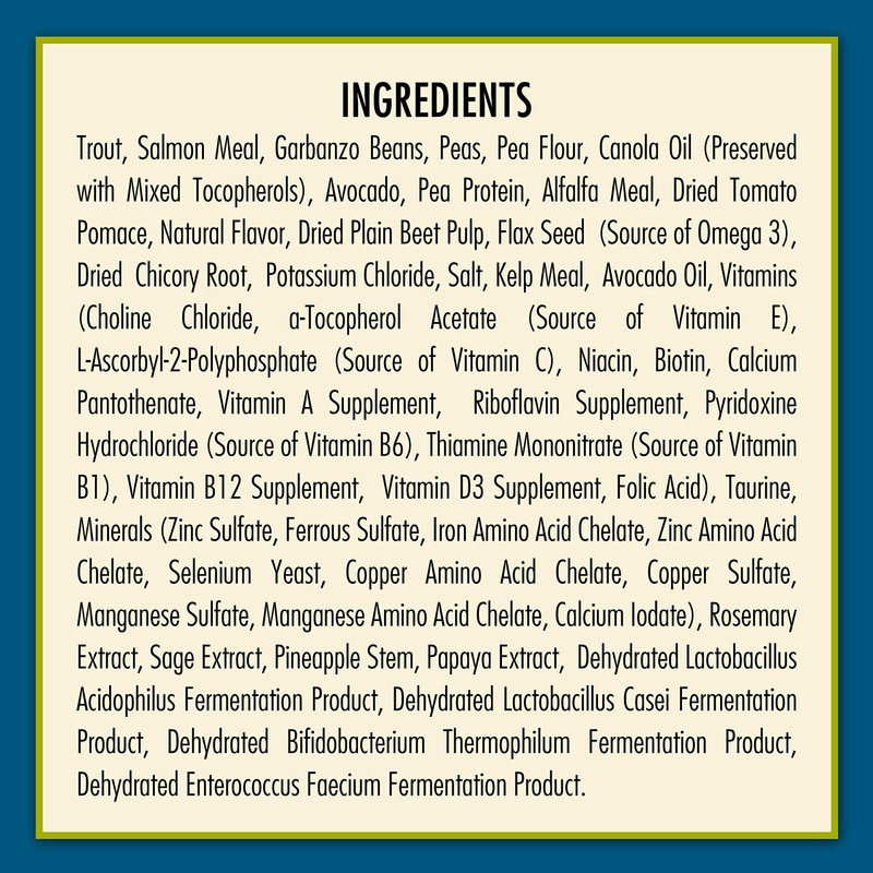 - Grain Free Limited Ingredient Diet: Trout Is The First Ingredient & Fish is the Only Source of Animal Protein To Help Minimize Food Sensitivities