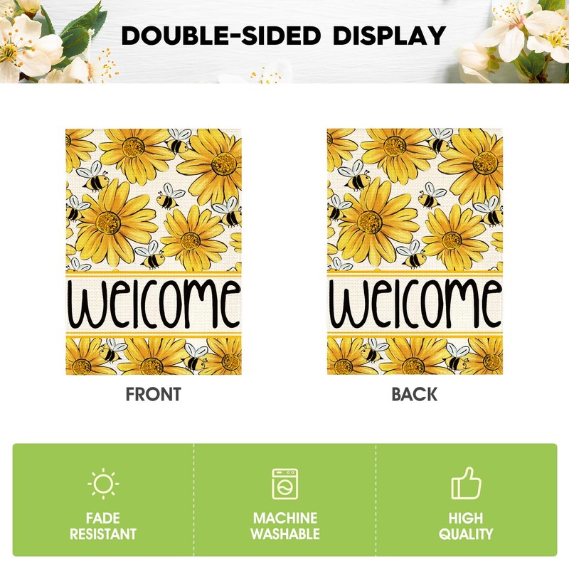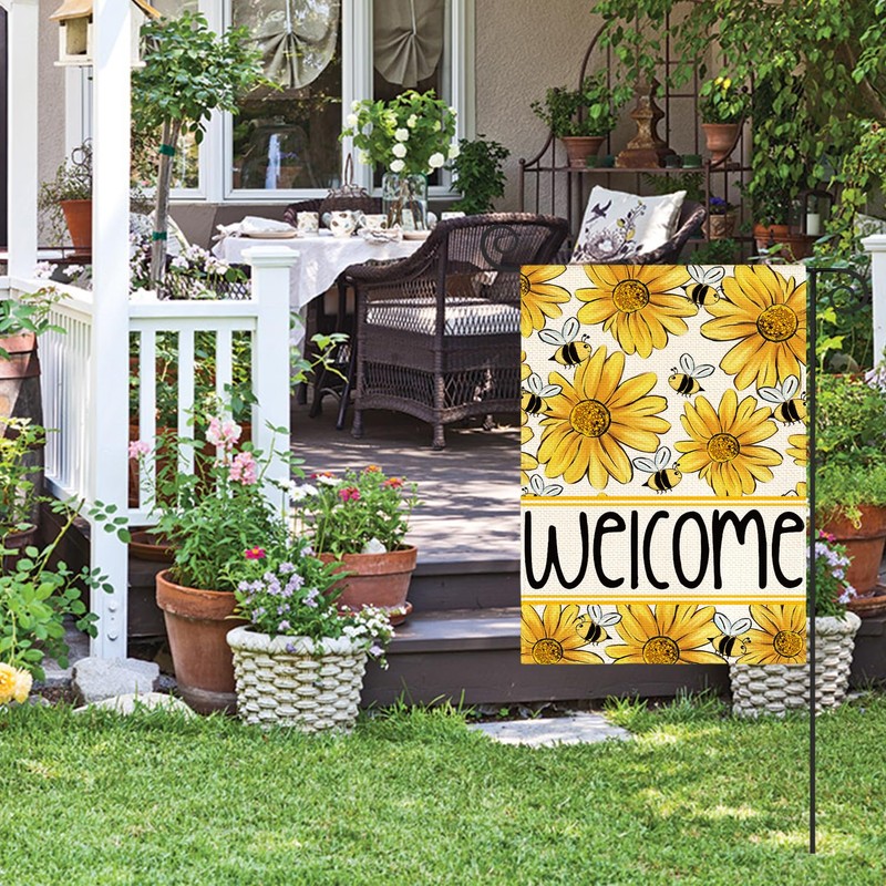 AVOIN colorlife Sunflower Bee Spring Summer Garden Flag 12x18 Inch Double Sided Outside, Welcome Seasonal Yard Outdoor Flag