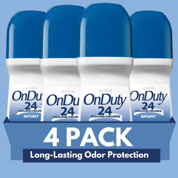 Avon On Duty Sport 24 Hr Roll-On Antiperspirant Deodorant, – 2.6 fl oz (4-Pack)