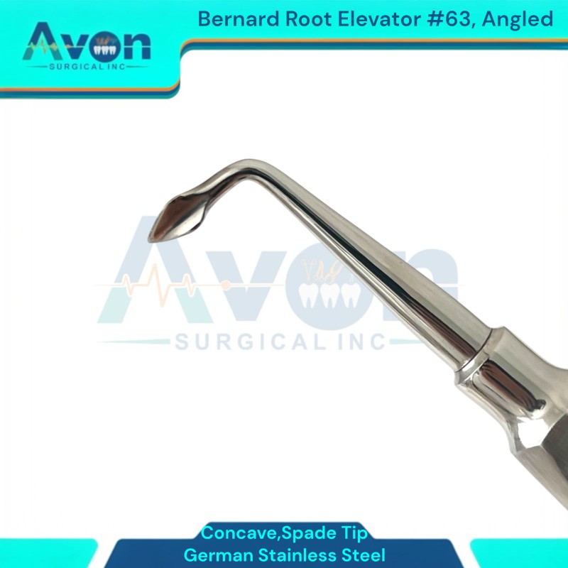 Avon Surgical Bernard Dental Root Elevator with Concave Spade Tip, Bent, No. 63 - Premium