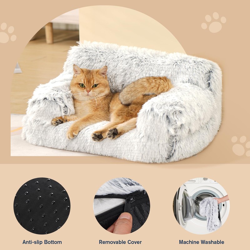 Avont Cat Couch Bed, Plush Pet Sofa for Indoor Cats Kittens Dogs Kitty Puppy Small Animal with Removable and Machine Washable Cover and Non-Slip Bottom -Lightgrey