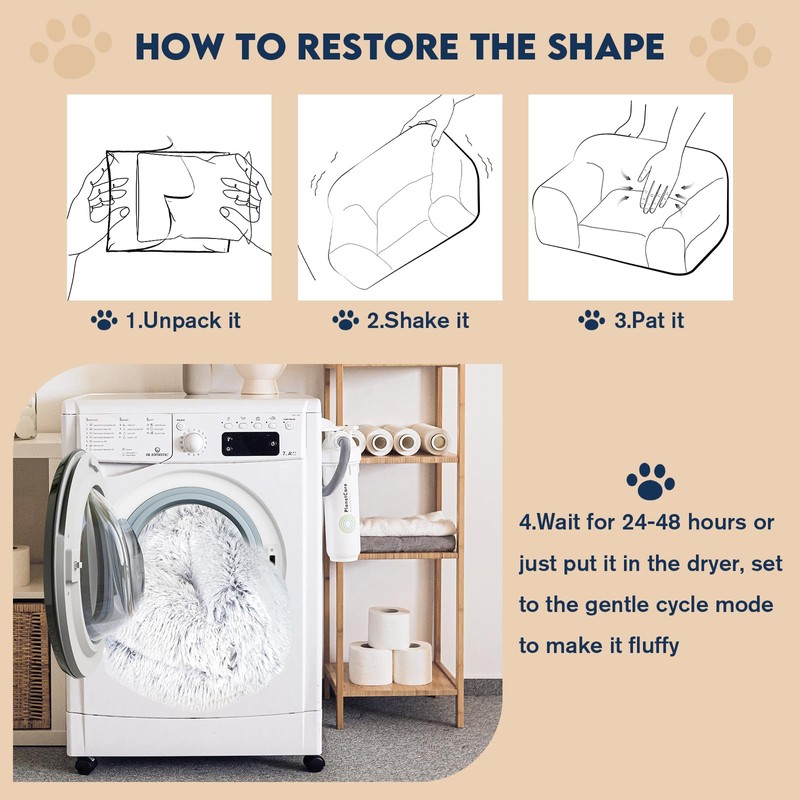 - No assembly required! Delivered vacuum-packed, just unpack, shake or fluff the product, then it’ll be ready for your pet to enjoy in 24-48 hours; Or warm it up in the dryer to restore its best shape