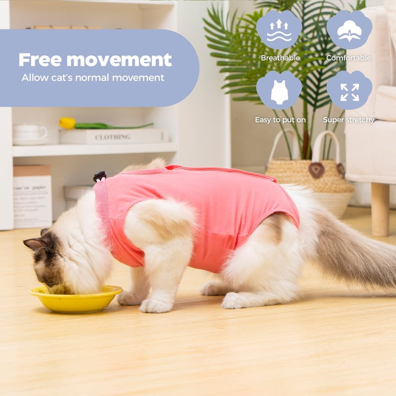 - Speedy Recovery: Helps prevent licking, supports healing from abdominal surgeries, spay sutures, and over-grooming while allowing natural movement. (Please give your cat time to to gradually adjust to wearing it)