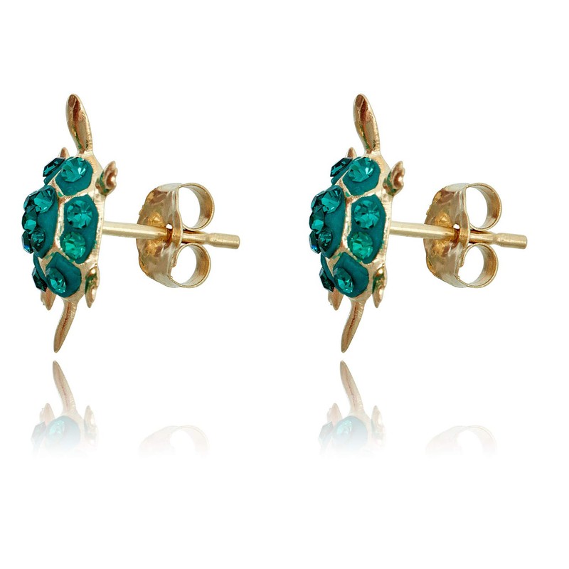 AVORA 10K Yellow Gold Green Turtle with Crystal Stud Earrings