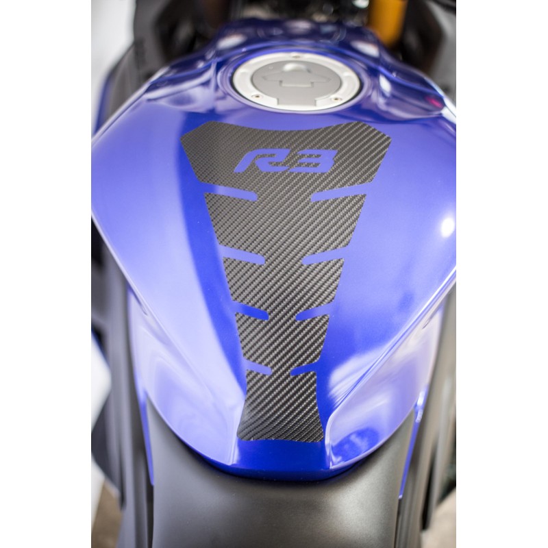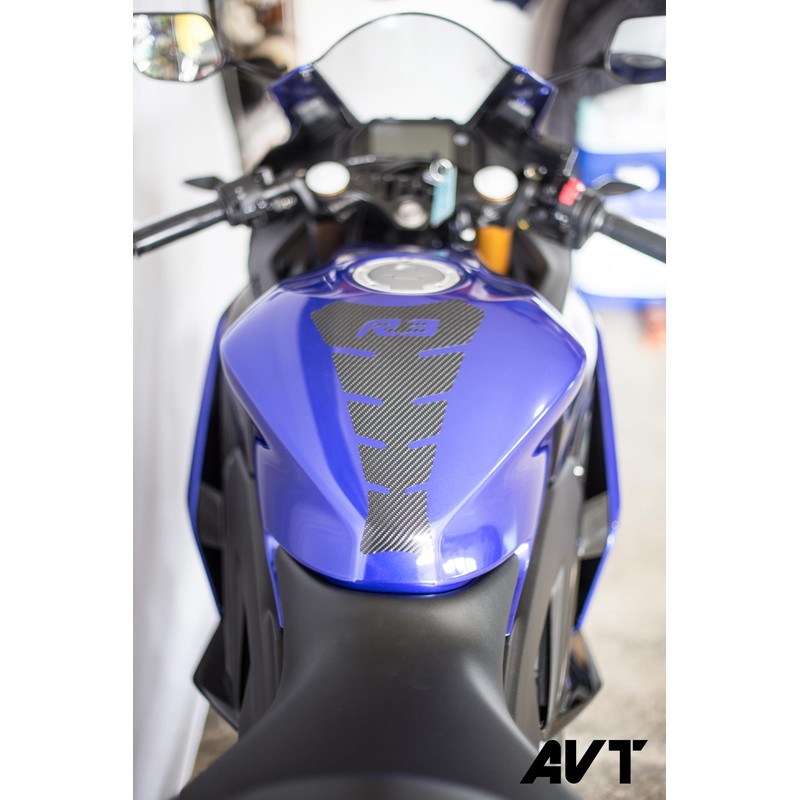 - The AVT YZF-R3 / R3 Tank pad is made to protect and and give better then OEM style to your YZF-R3 / R3's Tank. Made in the USA out of 3M 3d Carbon Fiber Vinyl.