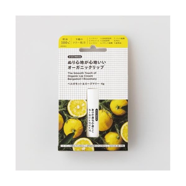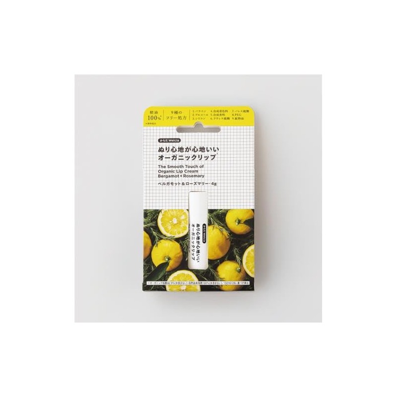 This organic lip balm is made with 100% natural ingredients and is made using a unique manufacturing method. Features a soft and melting feel and texture. 9 free formulas with less lip irritation, 82.9% or more (calculated based on ISO16128). Kokoroyagu Bergamot & Rosemary (*Uses 100% essential oil).