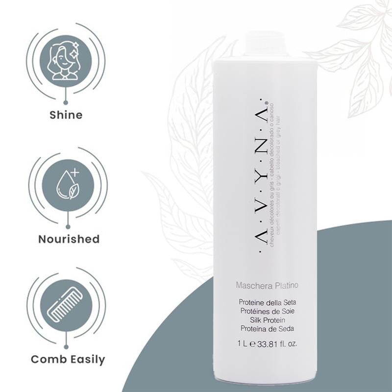 Avyna Platino Purple Shampoo & Maschera Set 33.88 fl oz Each | Silk Protein Treatment for Silver, Blonde, Bleached & Platinum Hair