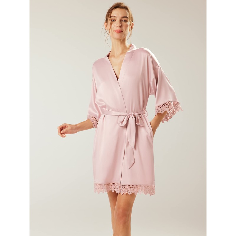 - ✿ MATERIAL - The bridal robe is made of soft polyester. The silky satin robe feels smooth, lightweight and comfortable. Luxurious and soft lace trim are finished on the bottom and sleeves of the dressing gown robe, which is elegant and sexy.