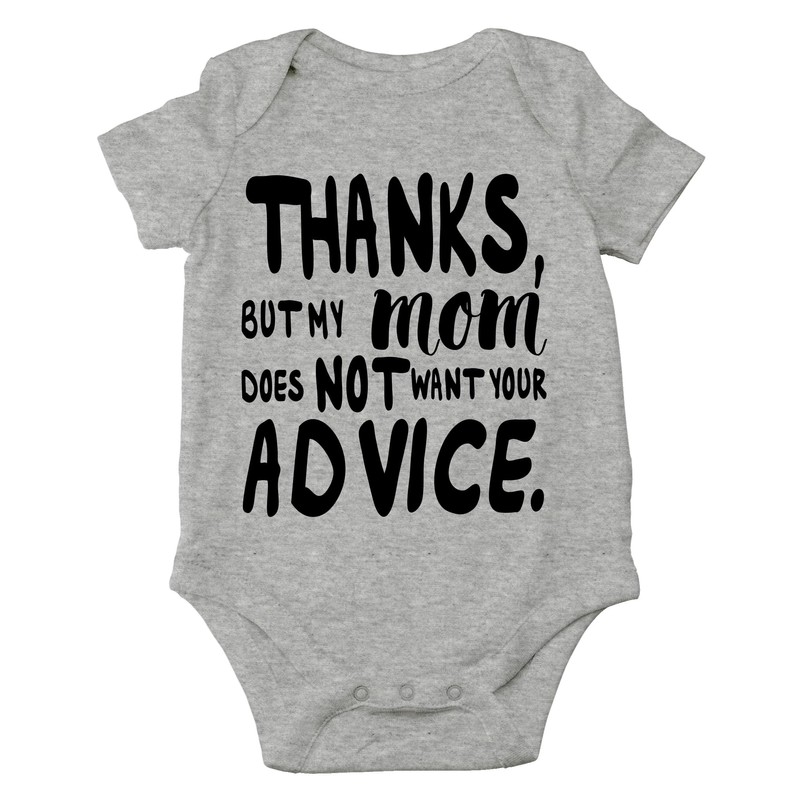 - Unique and Original Gift Idea: Elevate your gift-giving with this cute and adorable Thanks, But My Mom Does Not Want Your Advice one-piece infant bodysuit. It's the perfect present for baby showers, baby birthdays, gender reveals, due dates, Christmas, New Year, and for mom-to-be or Mother's Day. This charming baby creeper makes an excellent gift from a grandpa, grandma, aunt, uncle, niece or nephew. Bring joy and laughter with this thoughtful gift for the newest addition to the family.