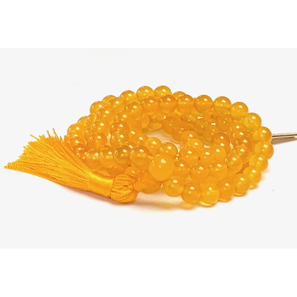 Awaken Your Kundalini Crystals Mala Beads Necklace Reiki Healing Stones Blessed & Energized Handmade 108 Buddhist Prayer Beads - Comes w/Velvet Pouch (Yellow Agate or Onyx, 8 mm)