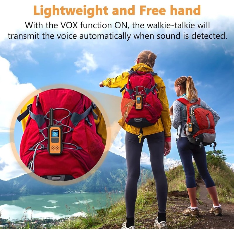 Complete Features: This walkie talkie with sturdy material can provide very useful features, such as VOX (auto voice trigger), auto channel scan, auto channel memory, power save function. Low battery warning, keypad lock and busy channel lock, automatic squelch, etc.