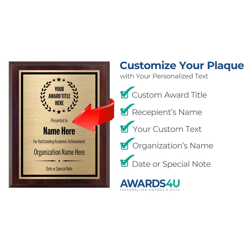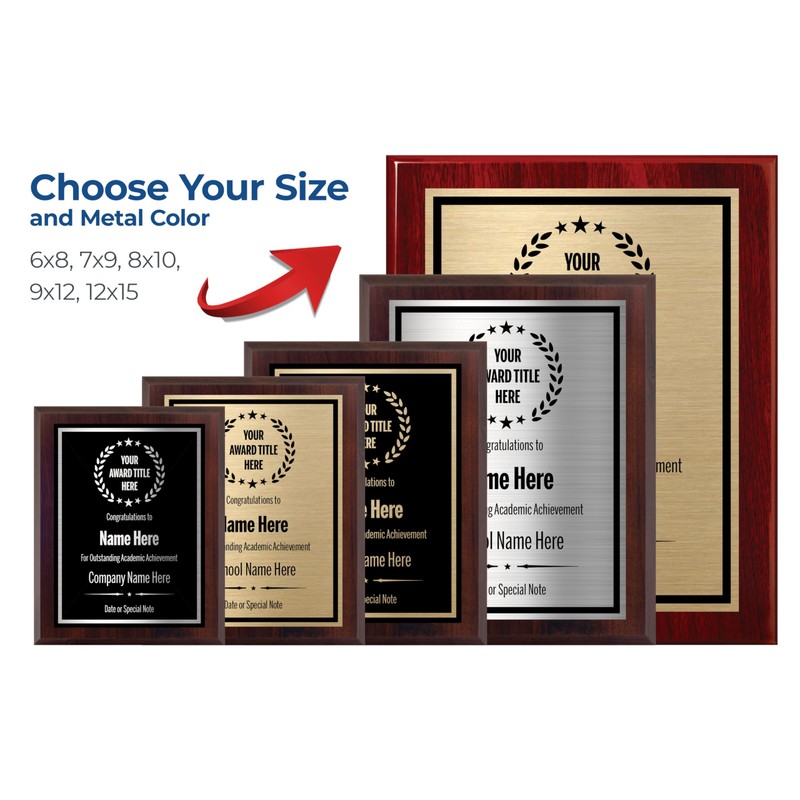 - Award Plaques Customizable: These award plaques are fully customizable. You can personalize them with the title of your award, custom engraving, the date, and the name of the recipient.