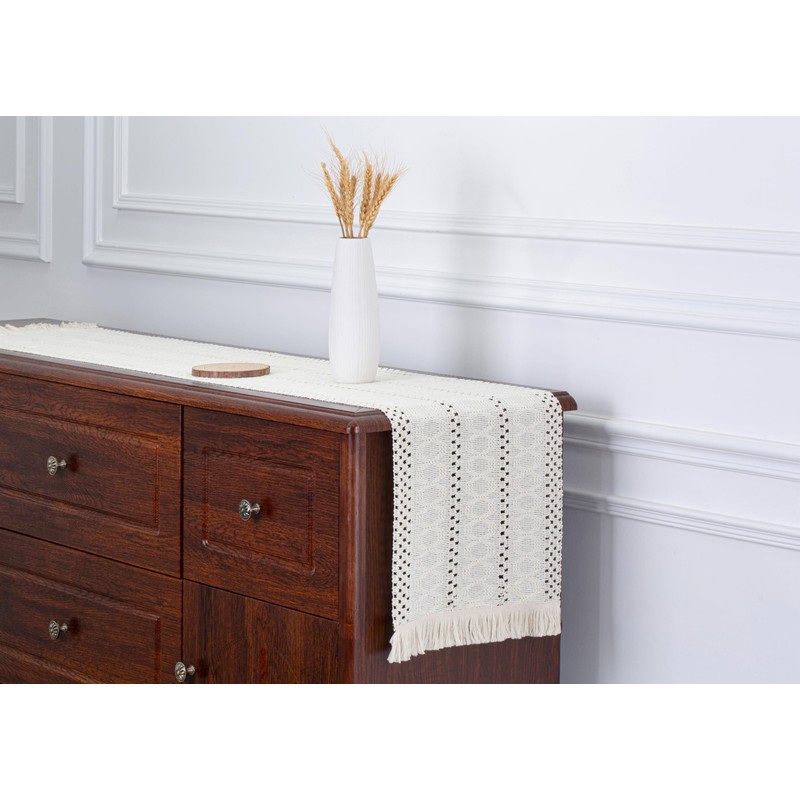AWARDSEN Cream Beige Table Runners 72 Inches Long, Boho Spring Table Runners with Tassels Hand Woven Linen Runners for Table Rustic Farmhouse Kitchen Dining Decor(12x72 Inch)