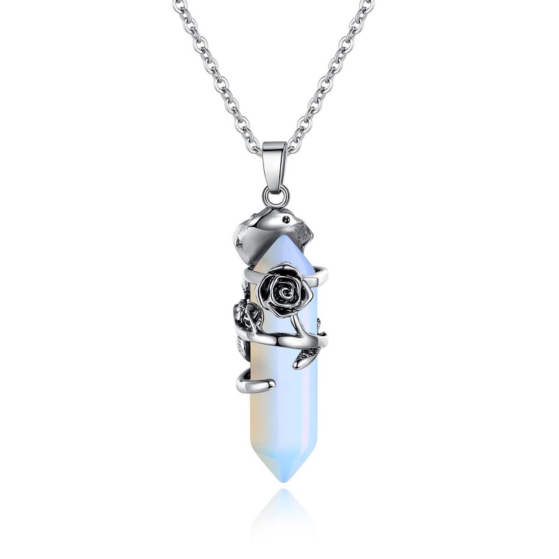 - Specifications: necklace chain: 60 cm. Crystal lace pendant: 40 mm x 10 mm. Weight: about 10g. Material: Natural Rose Quartz Crystal Stone & Stainless Steel