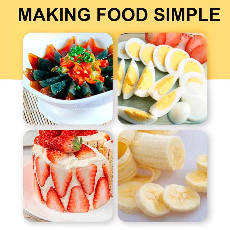 - Design: Drei Klingendesigns für Eierschneider, einschließlich Blütenblatt schneiden, halbschneiden und dünne Scheiben schneiden, um innovative Lebensmittel zu schaffen. Der Griff mit hervorstehendem Design ist einfach zu greifen und rutschfest. Die feste Basis mit konkavem Bogendesign ist stabil und nicht leicht zu rutschen.