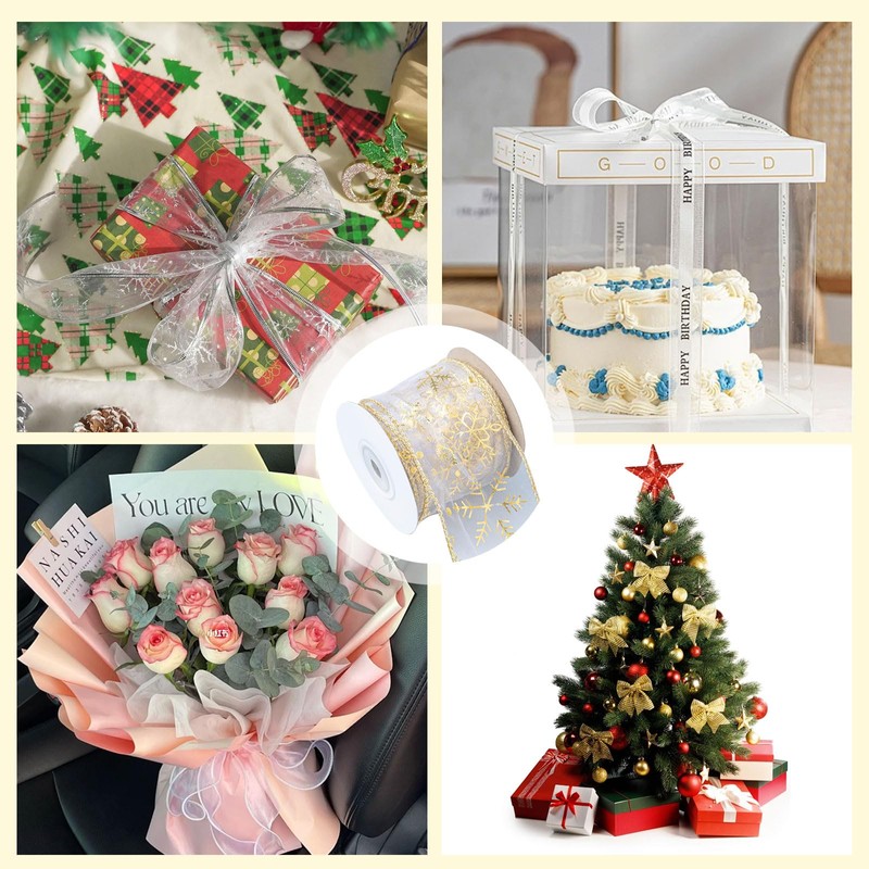 - Package Includes: You will receive 1 roll of 11 yards/ 10 meter long ribbon snowflake wired sheer glitter ribbon, christmas tree ribbon enough length can meet your decoration need.