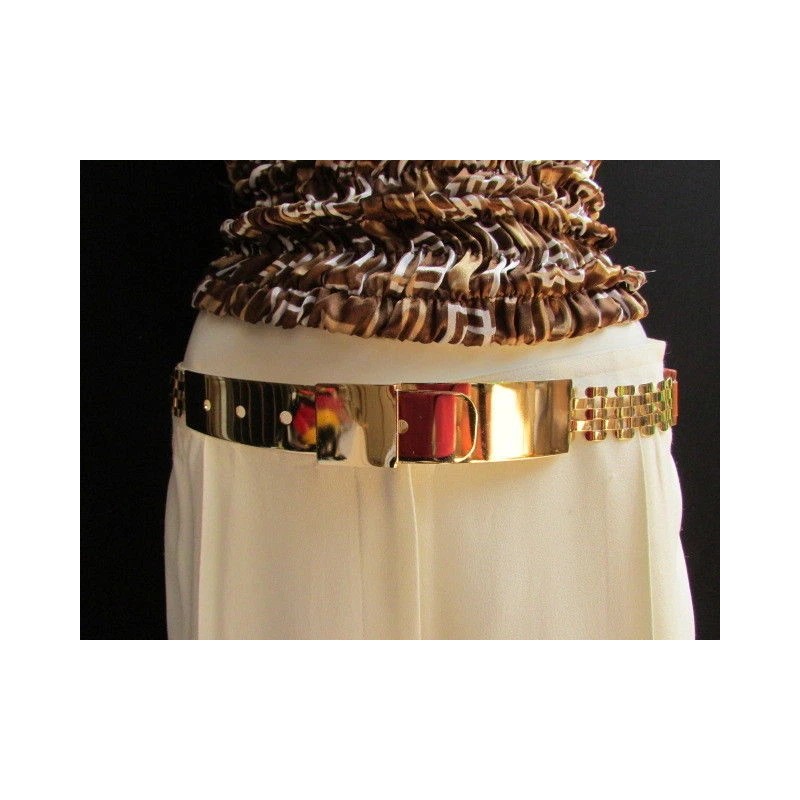 Awaystyle4you Dressy Women High Waist Hip Gold Metal Plate Sides Links Belt Elastic Brown S M