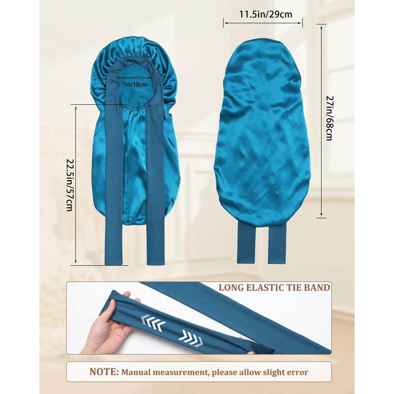 - Perfect for Long Hair: The long silk bonnet is 68 cm/27 in long, which has enough space to accommodate thick and long hair; and it comes with two long elastic straps to better fix the sleep bonnet and prevent it from slipping off at night