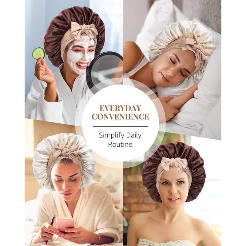 - REVERSIBLE DESIGN: With a two-layer reversible design, this hair bonnet can be worn in two different colors/patterns to match any sleepwear or mood
