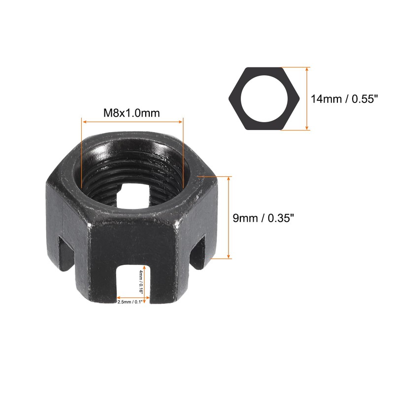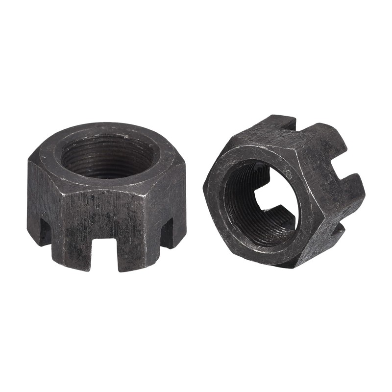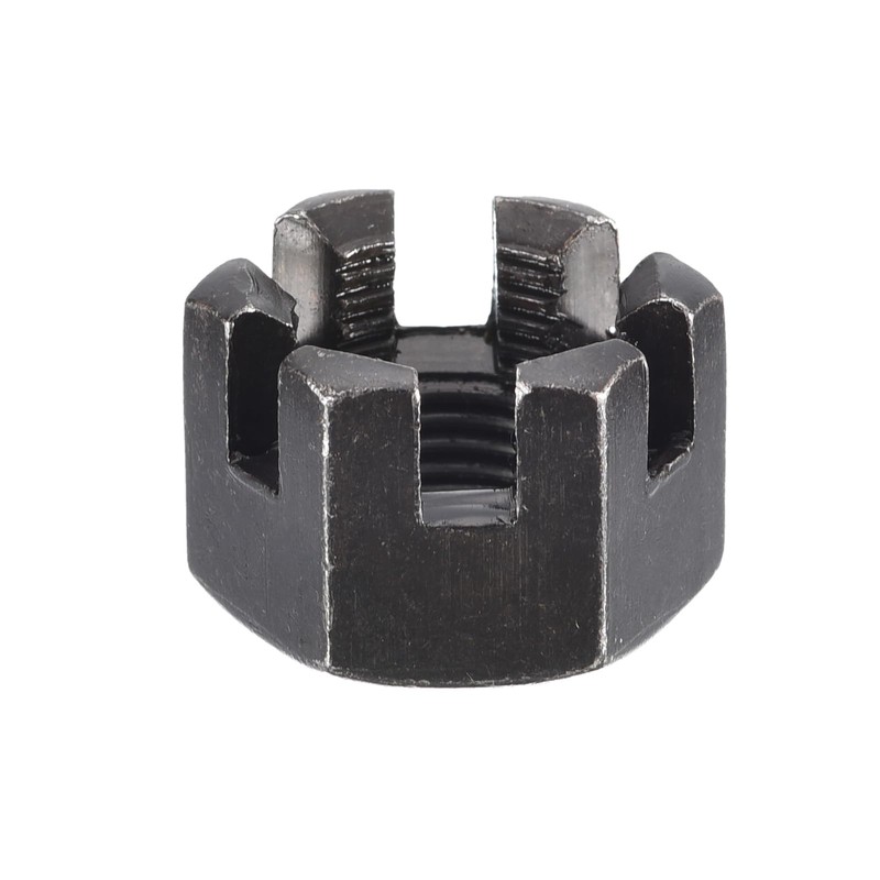 - [Material] - Constructed from durable carbon steel, this hex slotted nut features a blackened surface finish. With exceptional hardness and resistance to rust, deformation, wear, and corrosion, it guarantees long-lasting performance.