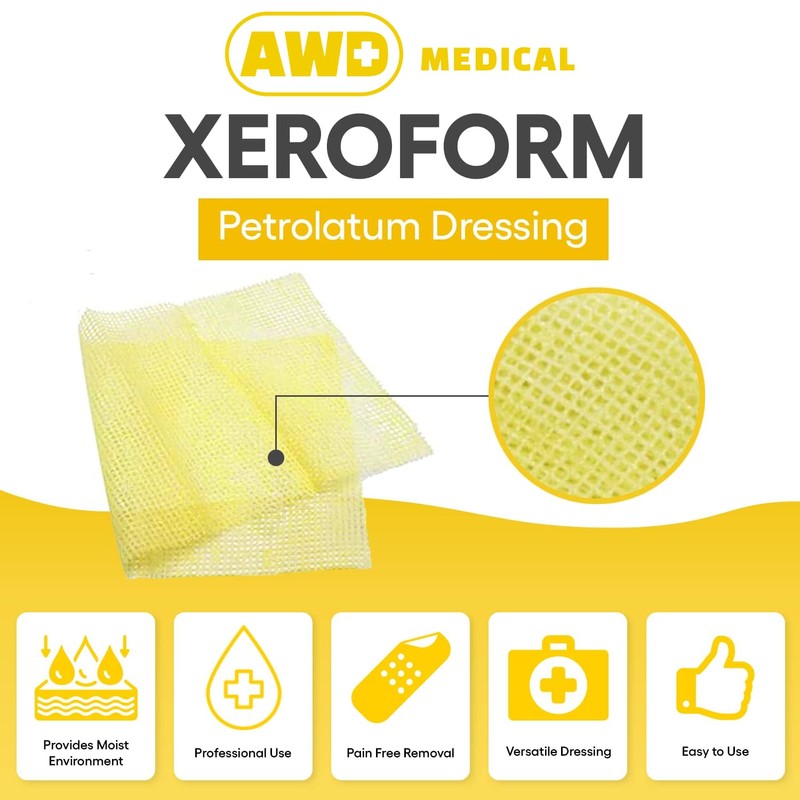 - PROVIDES A MOIST ENVIRONMENT - AWD's Xeroform aids non-exudating wounds to stay moist. These wounds include donor sites, lacerations, burns, abrasions, and skin graft sites.