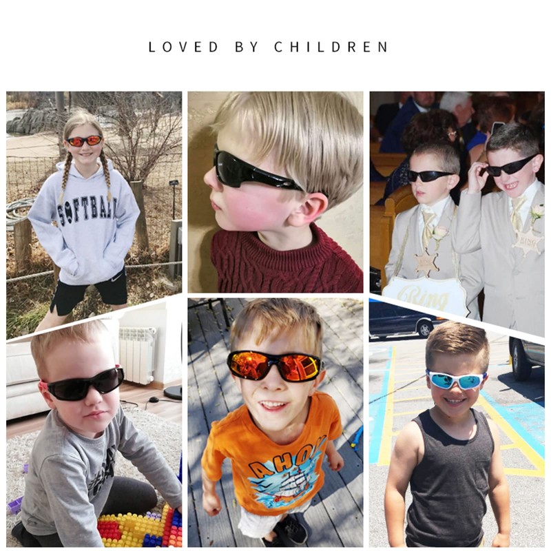 - 【SUITABLE For MULTI OCCASION】Kids Sunglasses has more color options which can been used as kids baseball sunglasses ,kids riding sunglasses,as well as climbing sunglasses.The wide age range 3-12 can fit kids well.