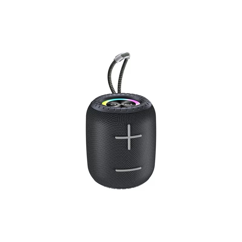 Parlante Awei Y526 Bluetooth Tws Negro' con luces incorporadas. Equipado con Bluetooth 5.0+BR+EDR+BLE (chip Jieli) para una conexión fácil y estable. La batería tiene una capacidad de 1.200 mAh, proporcionando una potencia máxima de 6W*1. El tiempo de carga es de aproximadamente 120 minutos, y el tiempo de reproducción es de 4-5H (80% volumen).