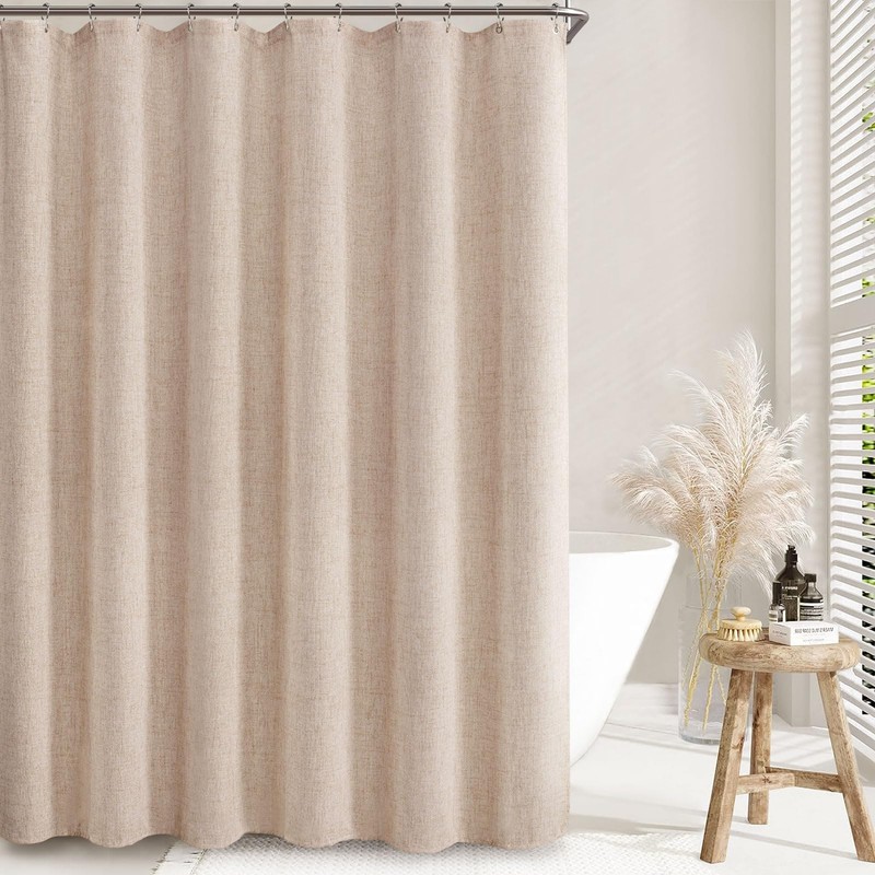 Awellife Beige Linen Style Shower Curtain Set with 12 Durable Hooks - Textured Fabric Heavy Cloth Shower Curtains for Bathroom 72 x 78 Inch