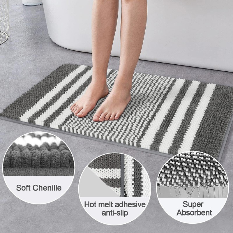 - 【Ultra Absorbent】 Meet absorbent bath rug with dense chenille, keeping floors clean when you step out of the bath or shower. Instantly dry your feet on this shaggy rug, protecting your floor from water damage.