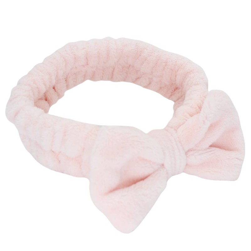 Awenbin Spa headband, bowknot headband in tender pink, reusable, soft and comfortable, preventing liquid from getting wet and disrupting hair, ideal for facial cleansing, bathing, and yoga exercises