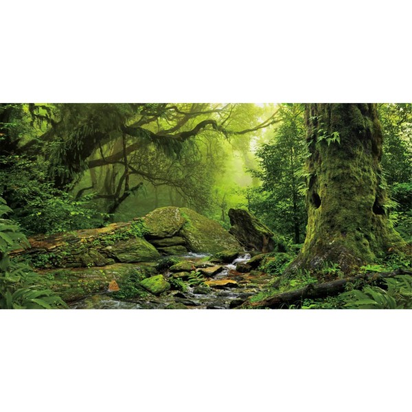 AWERT Tropical Forest Terrarium Background Stream Green Huge Tree Reptile Habitat Background Foggy Rainforest Aquarium Background 72x24 inches Durable Polyester Background