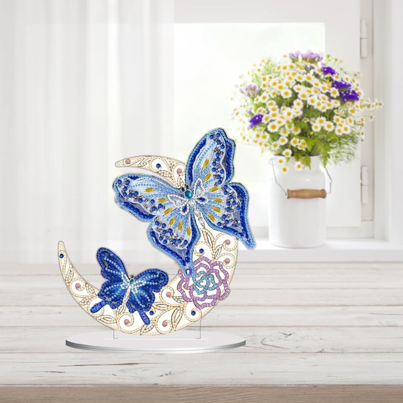 Awesocrafts Diamond Art Table Top Ornaments Blue Butterfly Moon, 5D Diamond Painting Tabletop Decorations Special Shape Crystal Art Christmas Desktop Decor (Blue Butterfly)