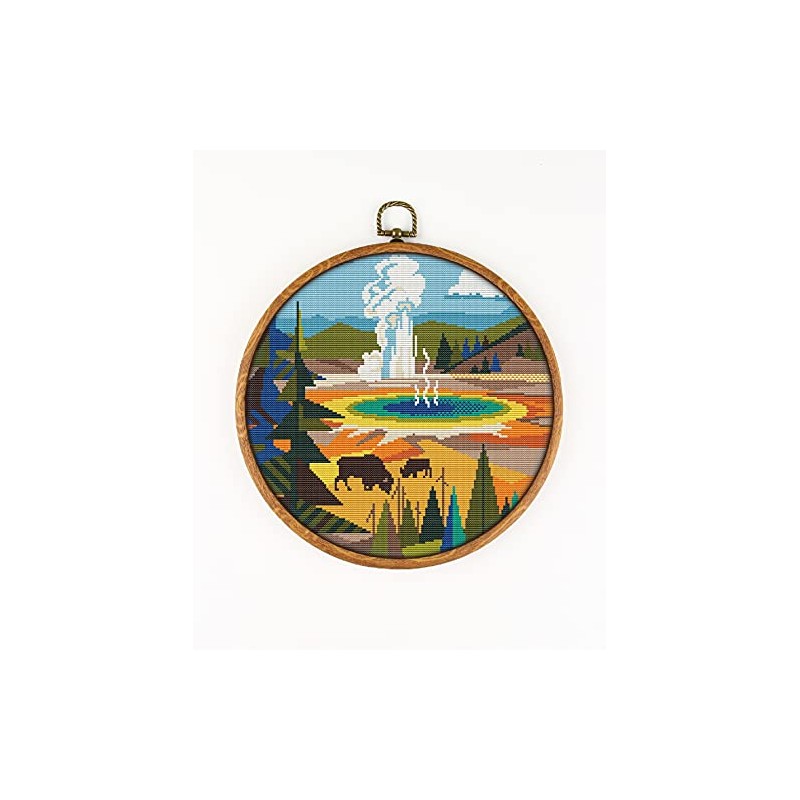 Awesome Pattern Studio Yellowstone National Park K466 Counted Cross Stitch KIT. Threads, Needles, 2 Fabrics, Threader, Clippers and 4 Printed Color Patterns. Embroidery Pattern Kit